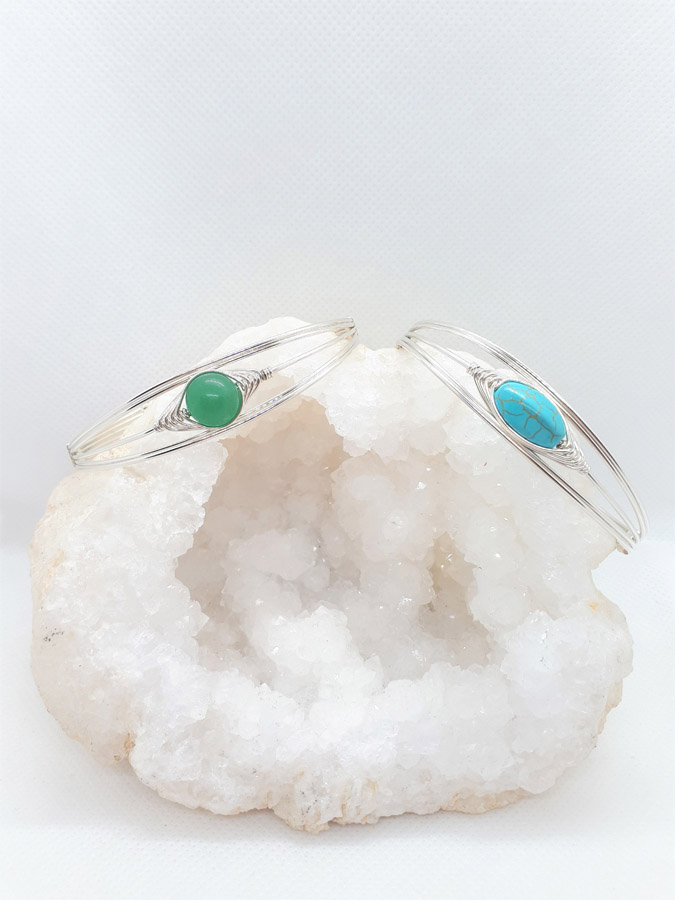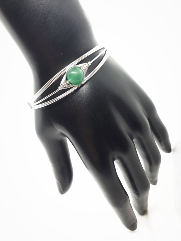 Ručno izrađena posrebrena narukvica galvanizirana srebrom sa žadom.